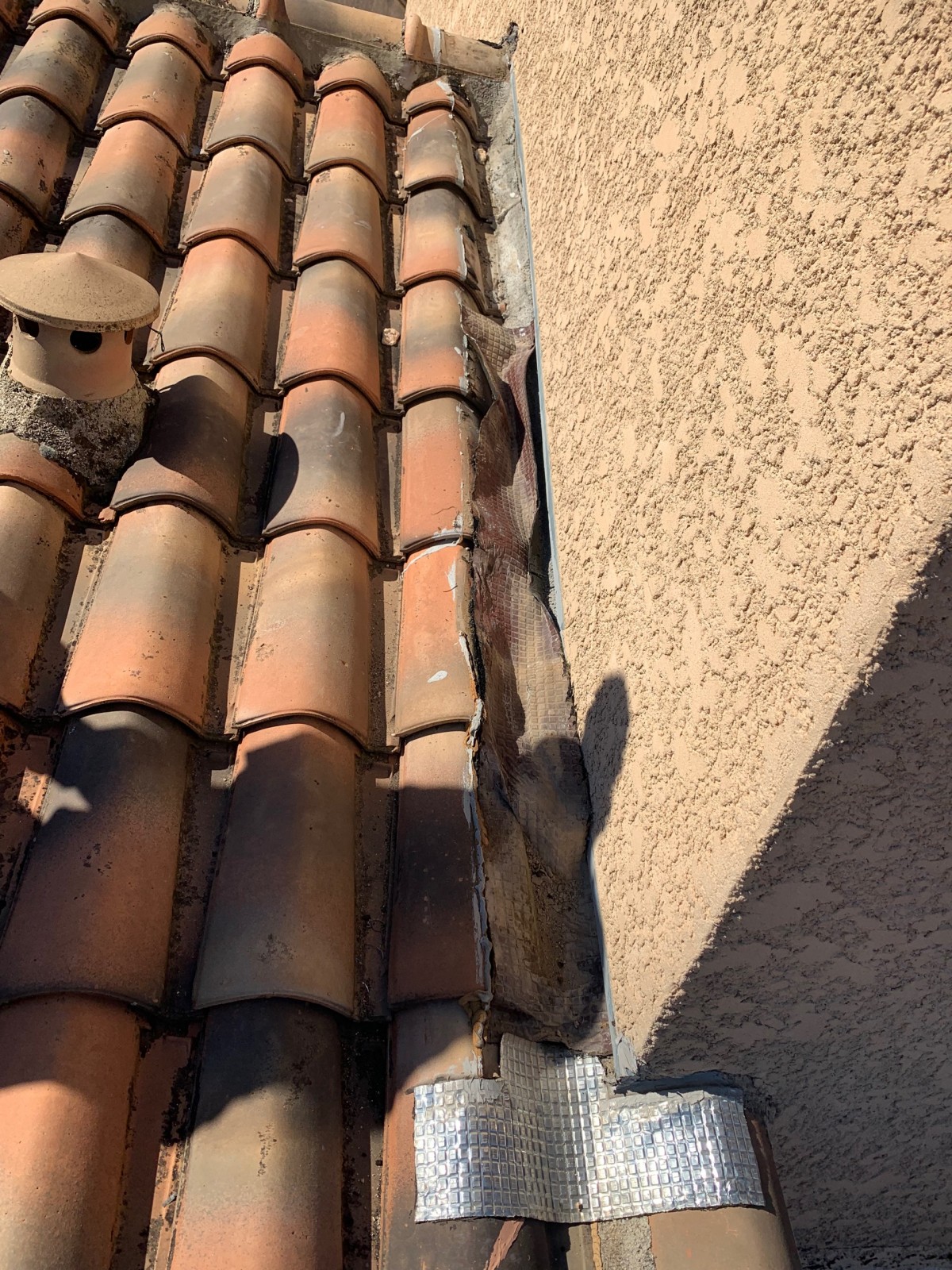 Puis nous avons poser les nouveaux solin d’étanchéités Wakaflex de chez Monier, fixé par collage avec le mastic colle SikaFlex pro sur les tuiles et la façade