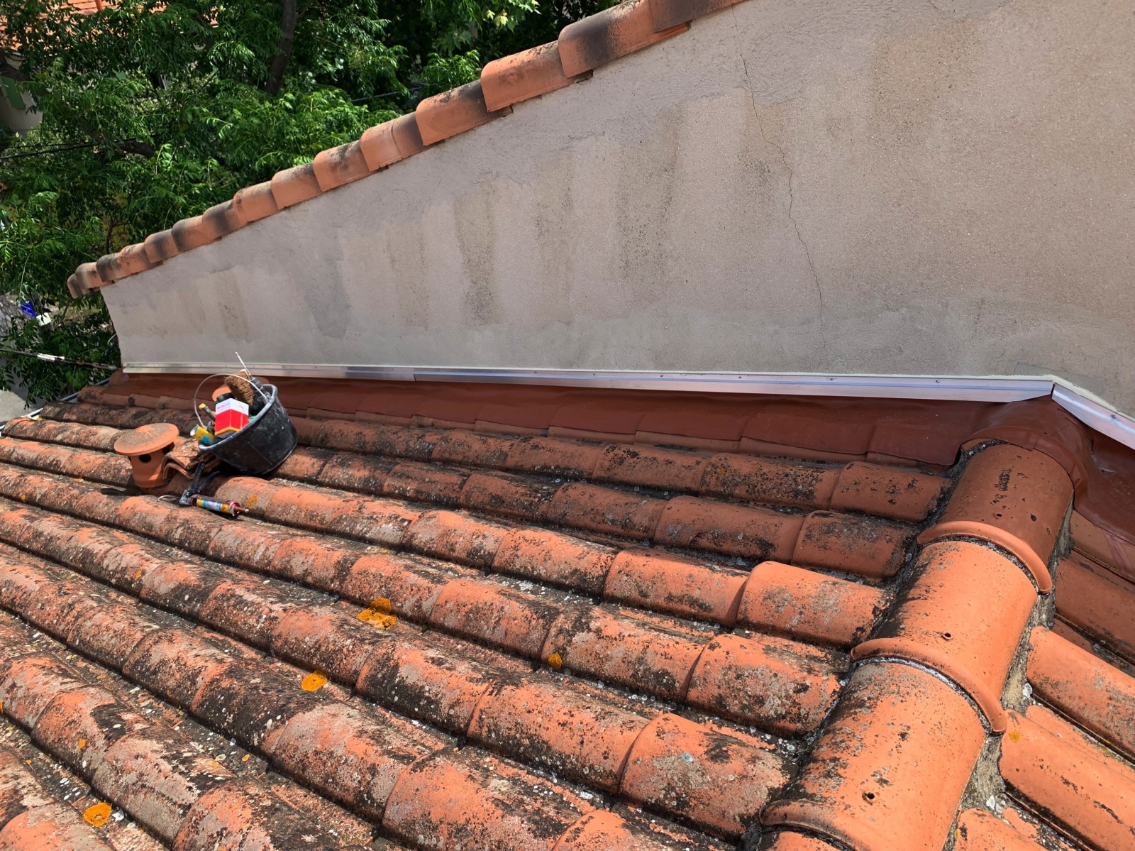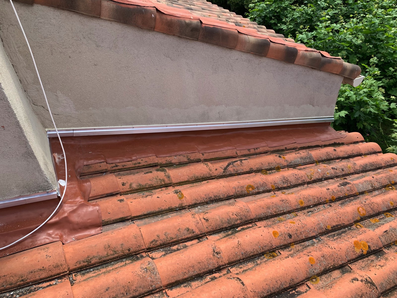 Notre cliente nous a contacté suite à de nombreuses infiltrations au niveau de ses solin entre le mur et sa toiture.