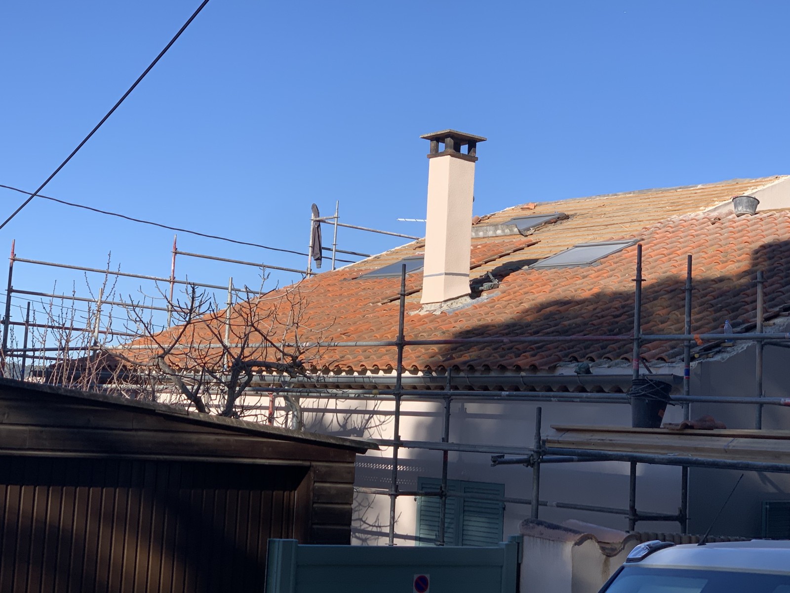 Nous avons profiter de la dépose de toute la couverture en tuile Romane pour effectuer en même temps l’isolation par l’extérieur des comble aménager