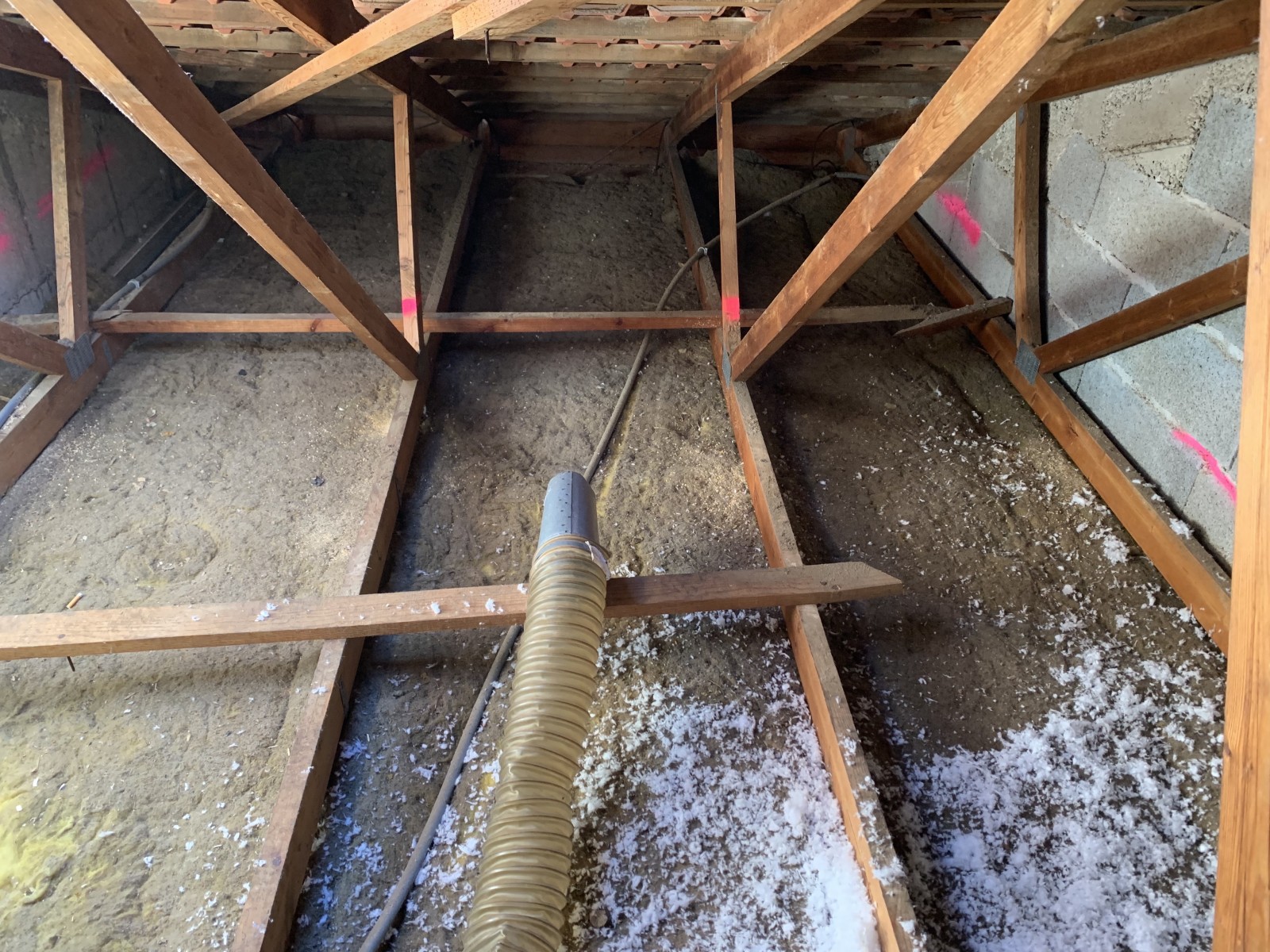 Avant d’ isoler vos combles nous passons par l’extérieur de votre toiture pour ne pas salir votre intérieur, contrôlons l’isolation existante puis vous établissons un devis en fonction de l’épaisseur de laine de verre à utiliser pour combler le manque d’isolant.