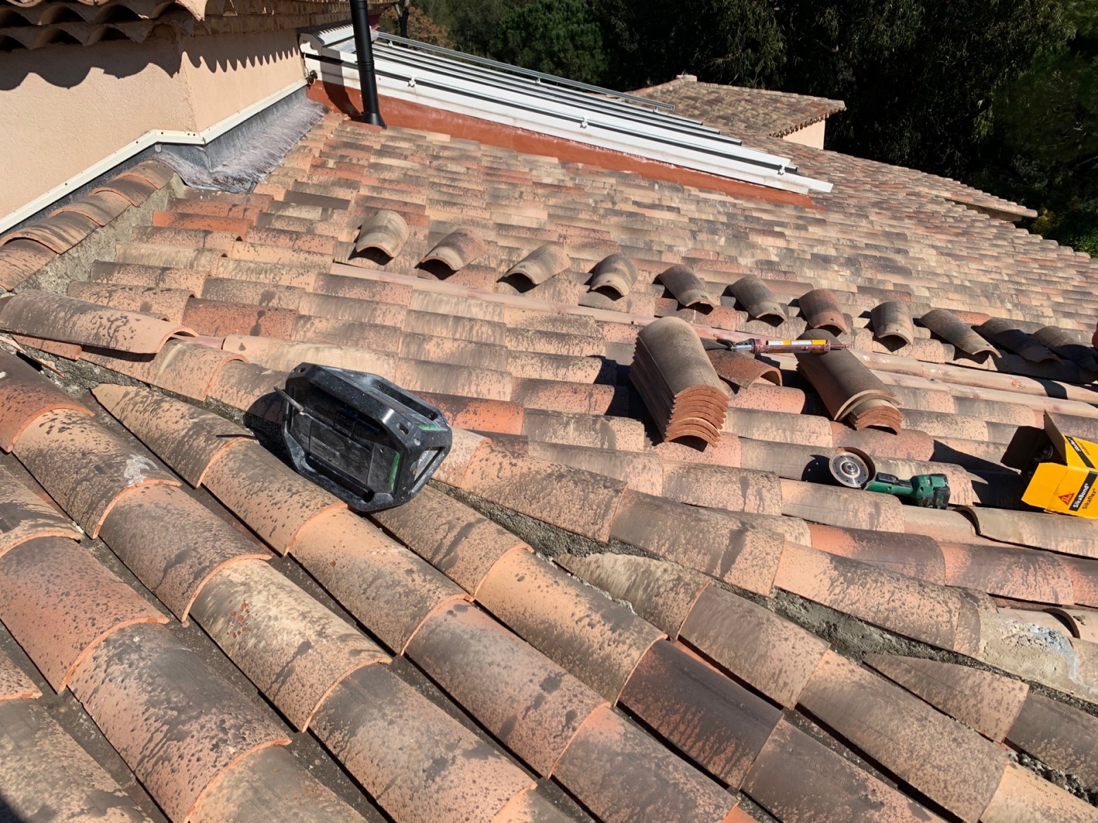 Rénovation, recollage de tuiles canal sur toiture PST et toiture tuile canal Provençal à Sanary sur mer