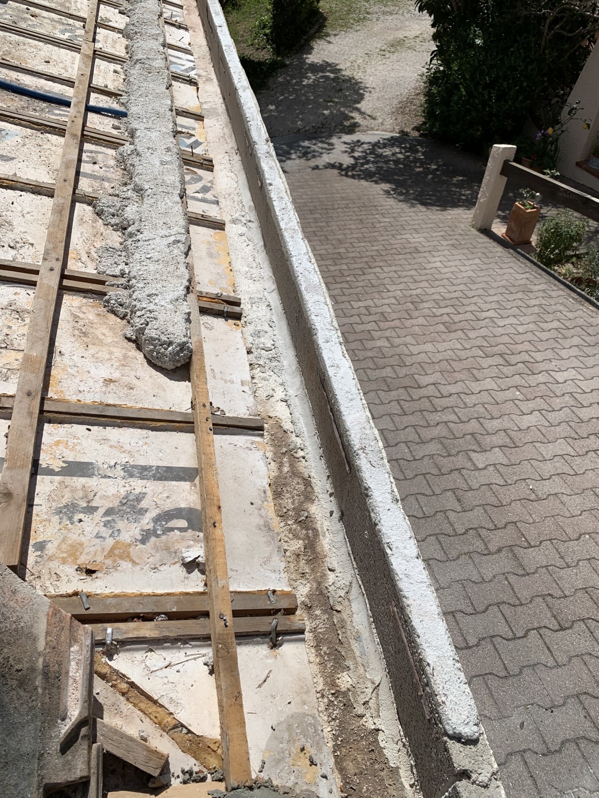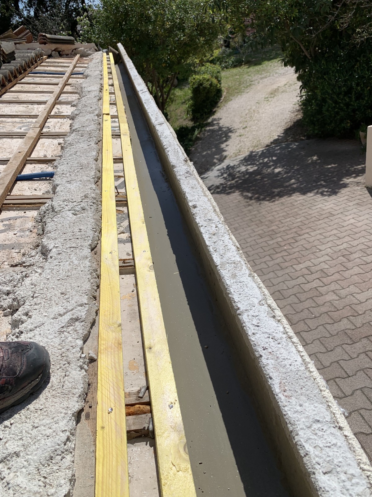 Nous découvrons un entablement en parpaing et mortier, pour pouvoir installer le nouveau Chenault. Nous avons dû réinstaller des Liteauneuf, ainsi que de crée une pente dans le fond de l’entablement en y coulant un ragreage fibrée.