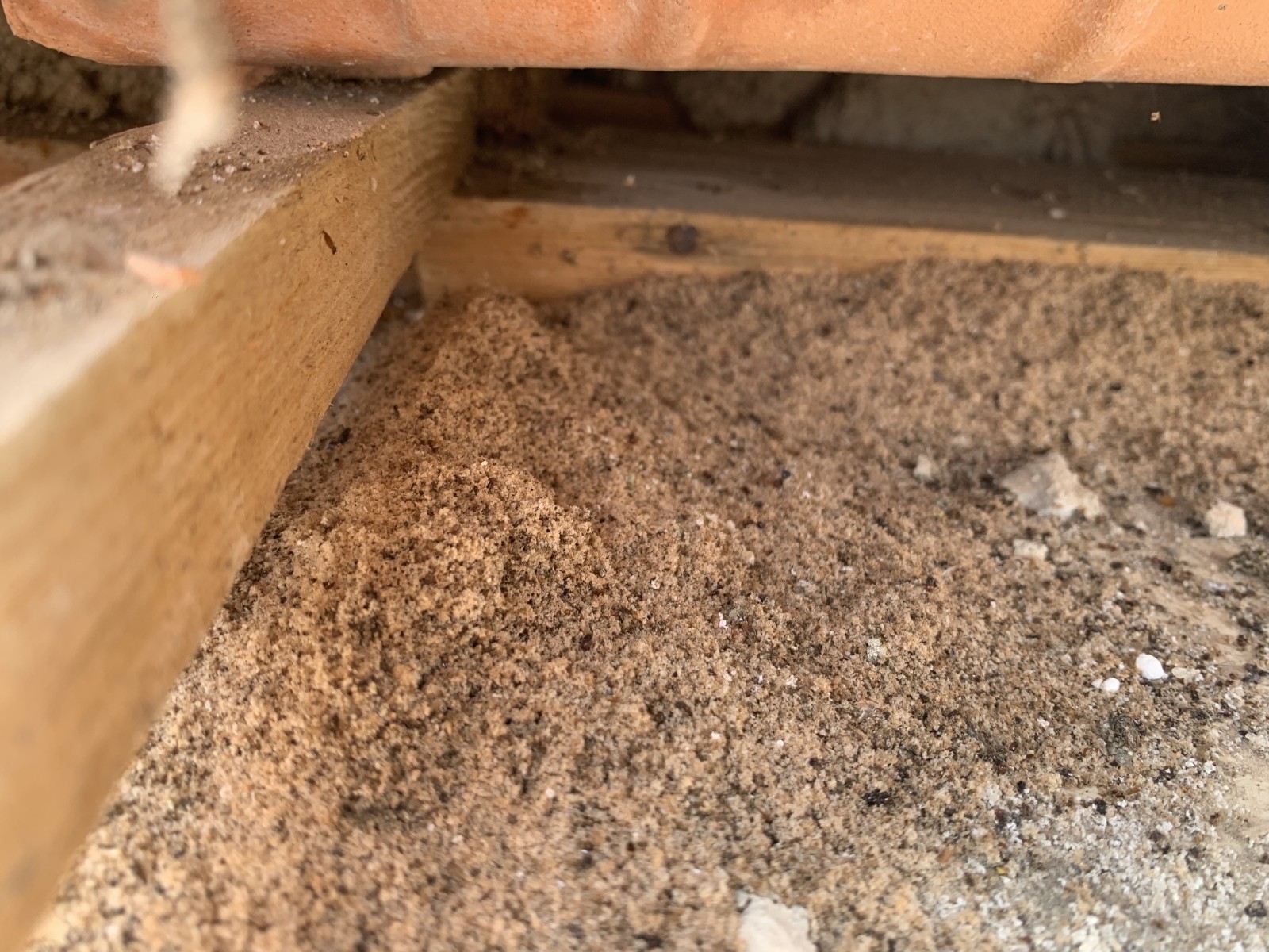 • Présence de petites sciures claires ou foncées près des poutres ou charpente.